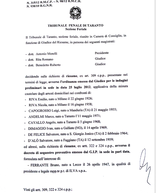 Commissione AIA Ilva di Taranto: le carte processuali tirano in ballo il presidente della Commissione Aia Dario Ticali. Lo stesso diffidato per l'AIA di Tirreno Power?