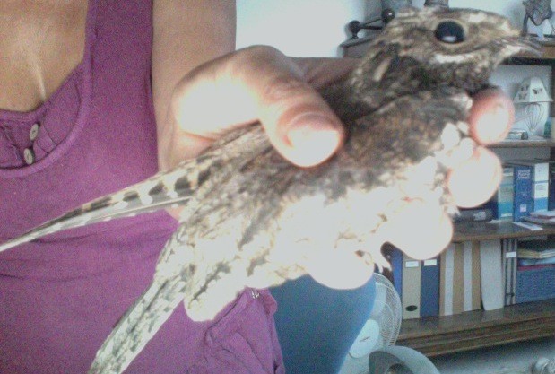 Un raro e prezioso succiacapre, ferito alla testa, è stato soccorso dai volontari della Protezione Animali a Stella San Martino, sotto il monte Beigua.