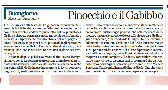 Su Pinocchio, Beppe Grillo e il Gabibbo