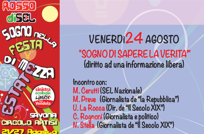 Lunedi 27 agosto si è conclusa la Terza Festa Provinciale di SEL Savona: Rosso di SEL. Sogno nella festa di mezza estate.