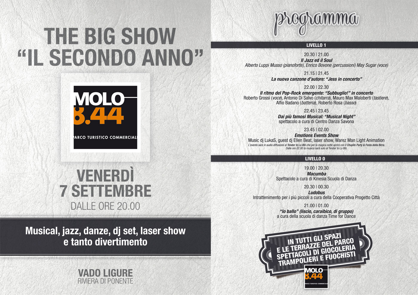 The big show al Molo 8.44: il programma