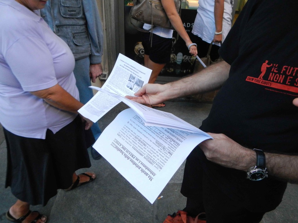 Volantinaggio antimafia, momenti di tensione surreale in Corso Italia: i Fotia mandano i dipendenti a controvolantinare