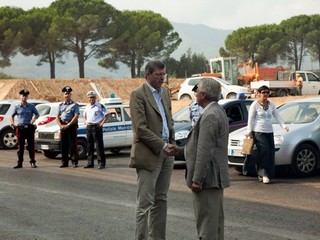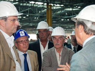 "Visita, questa mattina, al cantiere dello Stabilimento Piaggio di Villanova d’Albenga, da parte del presidente della Regione Liguria Claudio Burlando, degli assessori regionali Angelo Berlangieri, Renzo Guccinelli, Enrico Vesco, degli assessori provinciali Roberto Schneck, Santiago Vacca, Pietro Santi e del sindaco di Finale Flaminio Richeri.