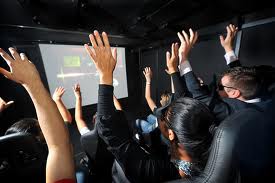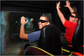 Quando la nonna andava al cinema era tutto in bianco e nero e anche lei metteva gli occhiali, solo che se li portava da casa ed erano enormi e un po’ bruttini… ma questo è tutta un’altra storia. Entrerete passando un portale, indosserete un paio di occhiali spaziali, prenderete posto sulle poltrone da formula 1 e via! Comincia un’avventura da non perdere: getti d’aria, spruzzi d’acqua nebulizzata, folate di fumo, cascate di bolle di sapone, fulmini e saette, la terra che trema sotto i piedi, sedili che vanno in tutte le direzioni e… i personaggi escono davvero dallo schermo!
