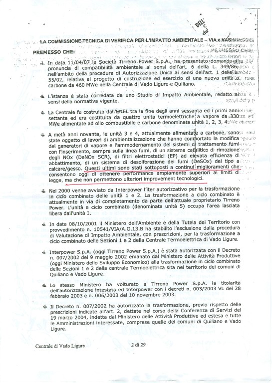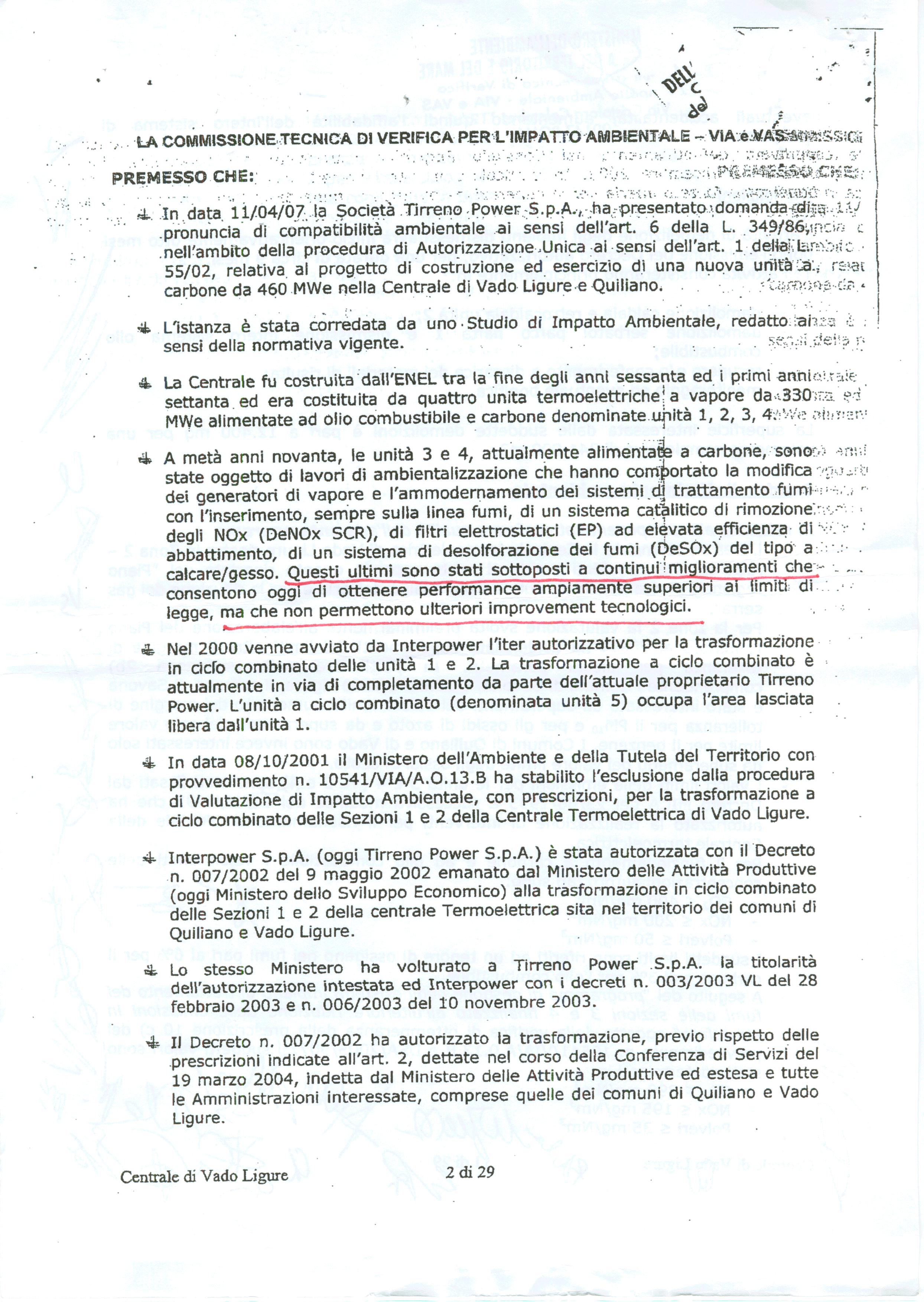 QUINDI CHIEDIAMO DEPOTENZIAMENTO E LA COMPLETA METANIZZAZIONE DI QUESTA "CENTRALE IN CITTA’, CHIUDENDO DEFINITIVAMENTE I GRUPPI A CARBONE E LASCIANDO I GRUPPI A METANO ATTUALMENTE IN FUNZIONE, CHE DA SOLI POSSONO PRODURRE PIU’ DEL DOPPIO DELL’ENERGIA CONSUMATA IN PROVINCIA DI SAVONA, COME GIA’ RICHIESTO DALLA COMMISSIONE SCIENTIFICA DI SPOTORNO COMPRENDENTE ANCHE L’ISTITUTO SUPERIORE DI SANITA’. (Prof. Mattioli e Prof. Scalia dell’Università La Sapienza di Roma, Dr. Falqui, Dr. Marano e Dr. Cortellessa I.S.S.).