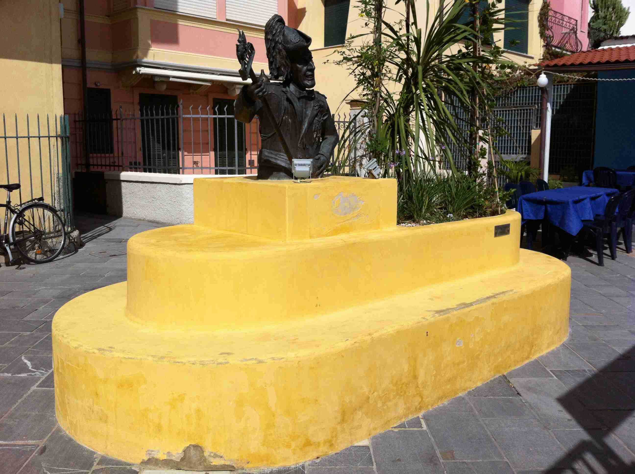 Il basamento in cemento pitturato di un improbabile giallo è già scolorito, e la placca con il nome di Totò già divenuta souvenir di qualche turista, perché o perché si è staccata o perché è stata asportata.