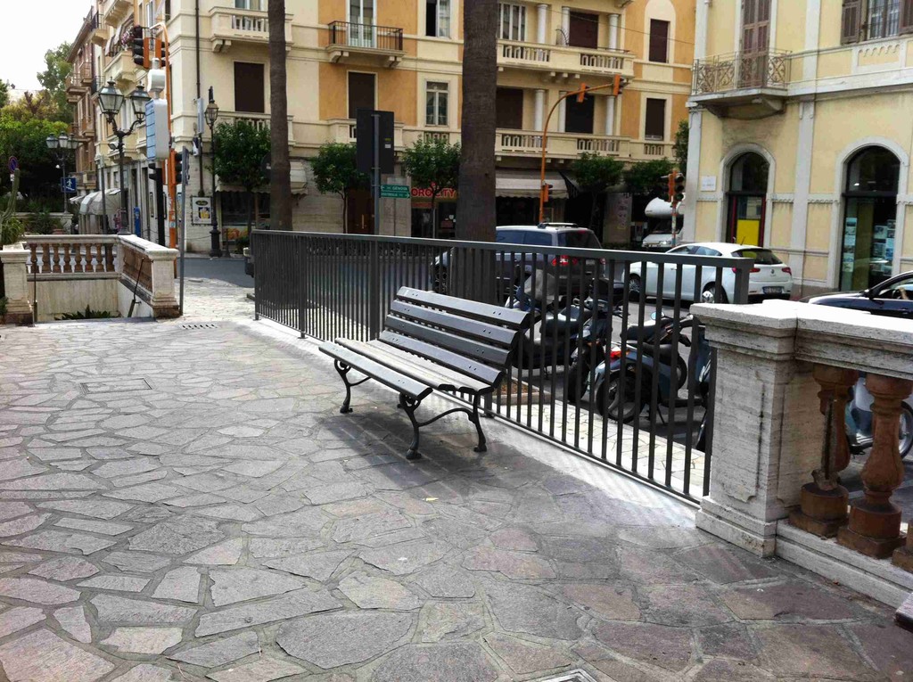 Tra l’altro è stata posizionata tra una porzione di balaustra che è sopravvissuta allo scempio dell’amministrazione e un altro tratto, sempre con la balaustra, che circonda la discesa del sottopassaggio pedonale, e colpisce ancora di più perché proprio non c’entra nulla con il contesto.