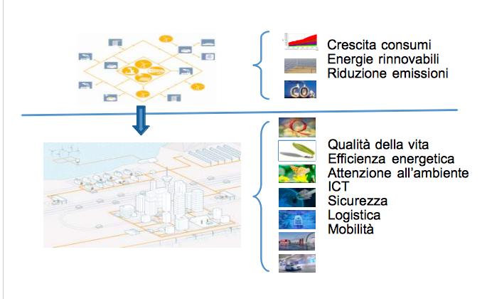 Dall'assunzione di cui sopra nel corso degli ultimi anni è maturata e cresciuta una proposta di modello di sviluppo alternativo che prediligesse la realizzazione di sviluppi urbani con caratteristiche qualitative diverse, puntando decisamente a sistemi “intelligenti” (smart) integrati fra loro che racchiudono alcuni punti cardine contraddistintivi al fine di costituire le chiavi per una Città Intelligente (Smart City):