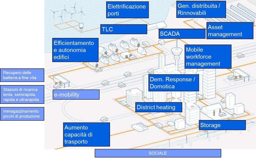 Tecnicamente quindi il tema delle Smart Cities racchiude in sé molti fronti di sviluppo, tra i quali ne emerge uno in particolare, dal quale non è possibile prescindere poiché trattasi della linfa vitale: la rete di distribuzione dell'energia, intesa in senso ampio.