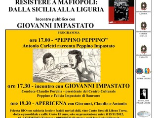 Lunedì 19 e martedì 20 novembre 2012, a Finale Ligure, Giovanni Impastato sarà ospite del progetto "Per questo mi chiamo Giovanni - un fumetto per ricordare la lotta per la legalità di Giovanni Falcone" per un ciclo di incontri dal titolo "Resistere a Mafiopoli - dalla Sicilia alla Liguria".