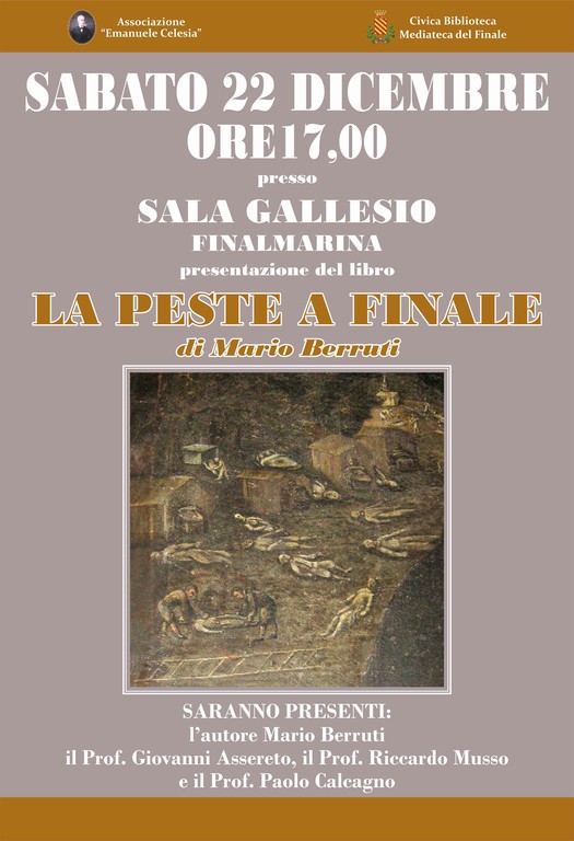 Su questa epidemia di peste, resa famosa dal Manzoni ne “I Promessi Sposi”, mai nessuno ha scritto alcunché; vi sono alcuni cenni nell’opera di Giovanni Andrea Silla, nell’ambito della sua Storia di Finale, e marginalmente nell’opera di Bernardo Gandoglia sulla storia di Noli.