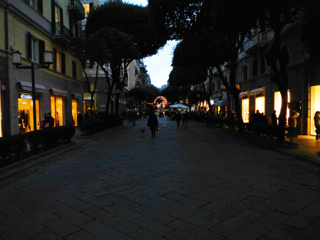 Sta di fatto che all’imbrunire corso Italia imbrunisce parecchio, restando - non fosse per le vetrine dei negozi - quasi al buio. Eppure di corrente a carbone dovremmo abbondare... (nell'ultima fotina, i lampioni si sono appena accesi, sono le 17:10 poco prima dell'ora tecnica del tramonto). Buffo che pare che di primo mattino restino accesi, a dar luce dopo l'alba...