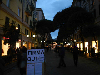 Sta di fatto che all’imbrunire corso Italia imbrunisce parecchio, restando - non fosse per le vetrine dei negozi - quasi al buio. Eppure di corrente a carbone dovremmo abbondare... (nell'ultima fotina, i lampioni si sono appena accesi, sono le 17:10 poco prima dell'ora tecnica del tramonto). Buffo che pare che di primo mattino restino accesi, a dar luce dopo l'alba...