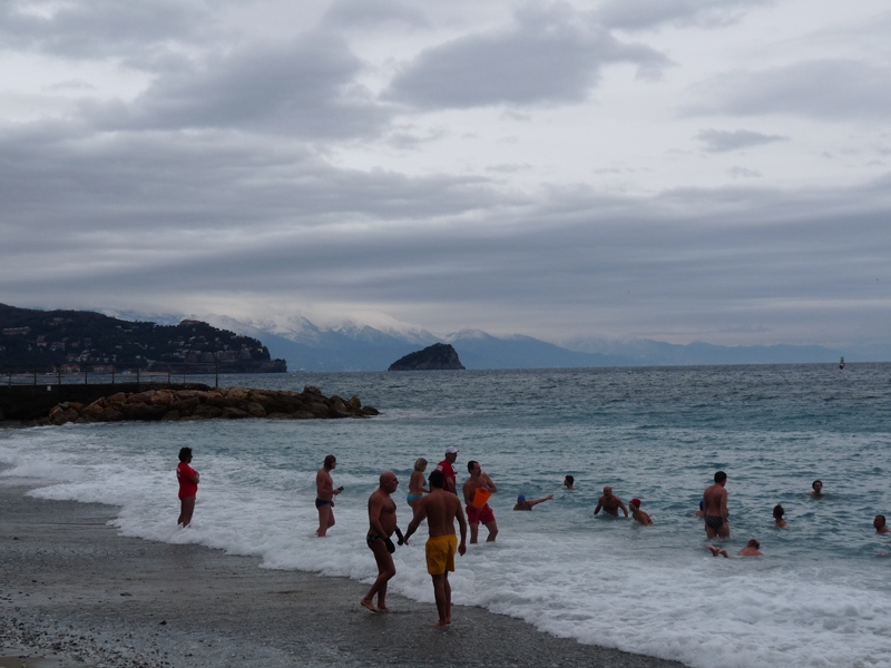 Molto suggestivo è stata la location del golfo di Noli, con le colline soprastanti innevate. La temperatura dell'aria era di 5° gradi mentre quella dell'acqua 11° gradi.