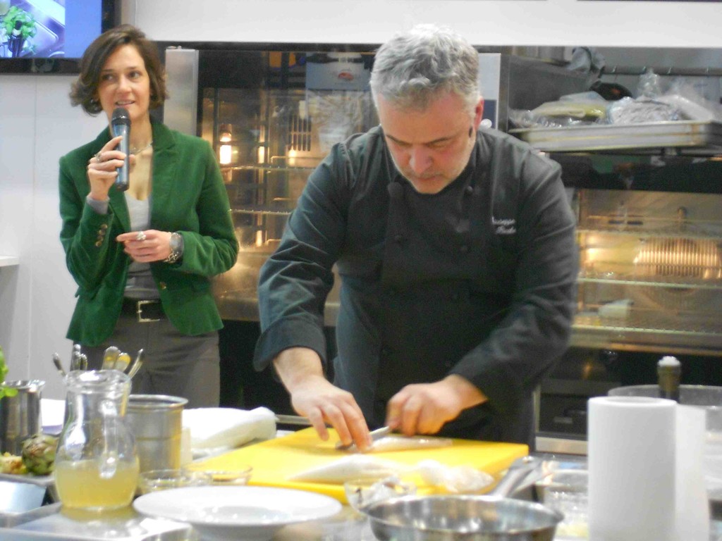 Sono stati preparati tre piatti, di cui uno salutistico secondo i canoni dell’iniziativa della Camera di Commercio di Savona dedicata al Ristorante del cuore – spiega il segretario generale camerale Eliana Tienforti, presente in fiera con il membro di giunta Paolo Calcagno -. Ricette che hanno sapientemente hanno legato l’olio , castagne e pesce azzurro, calamari con basilico e carciofi, il chinotto al cioccolato”.