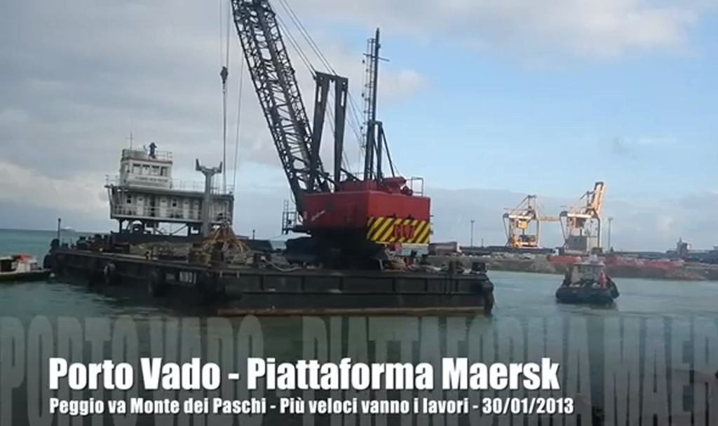 Proseguono i lavori nella rada di Vado, nonostante le vicende che coinvolgono il Monte dei Paschi, tra i finanziatori del progetto. E il nostro Mare come si vede ne gode...