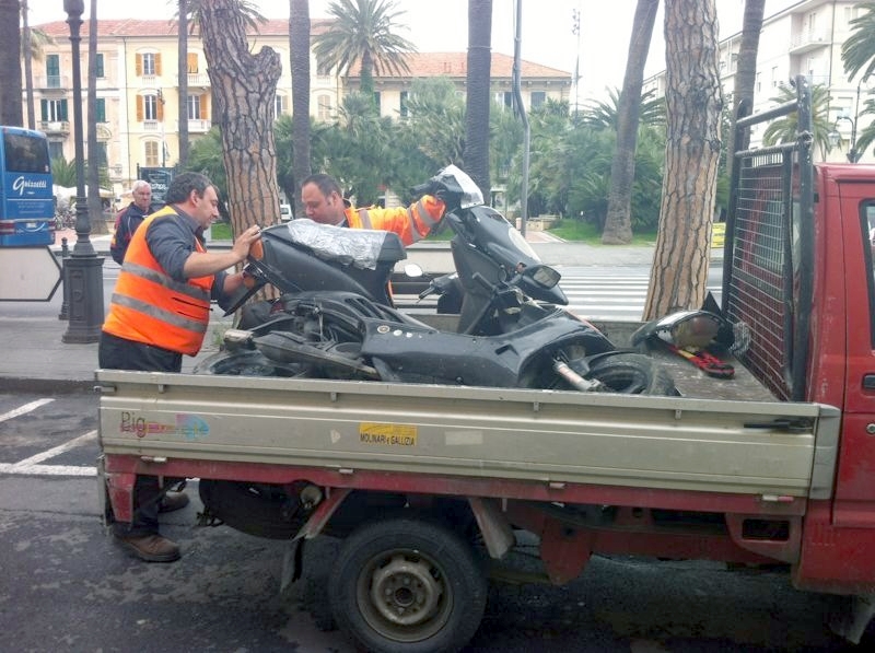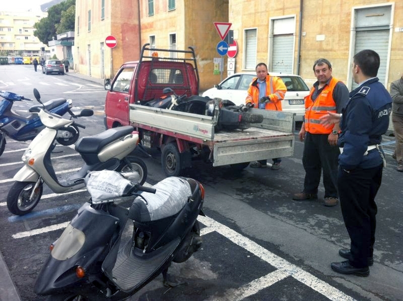 Nuovo blitz della polizia municipale per rimuovere biciclette e motorini abbandonate. Nei giorni scorsi, personale del comando di Polizia Municipale di Albenga, in collaborazione con personale comunale e sotto la supervisione dell’assessore all’ambiente Guido Lugani, ha effettuato un intervento programmato volto a rimuovere velocipedi e motorini in stato di abbandono.