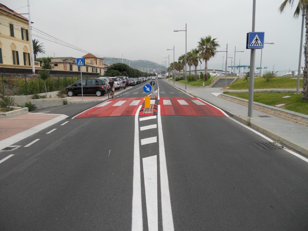 Completati anche gli attraversamenti pedonali rialzati, evidenziati con speciale vernice spartitraffico di colore rosso e bianco, completati sulla mezzeria da isole salvagente rialzate nelle zone ad alta densità di presenze pedonali quali via Foscolo (ingresso scuola), lungomare G. Marconi e lungomare M. Loreto. I nuovi attraversamenti favoriscono la sicurezza dei pedoni in attraversamento e contemporaneamente obbligano i veicoli circolanti a rallentare la velocità.