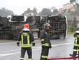 I vigili del fuoco l'hanno estratta da sotto il mezzo pesante pieno di GPL, per fortuna non era rimasta incastrata nelle ruote