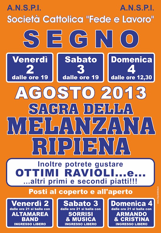 La Società Cattolica “Fede e Lavoro” di Segno, si prepara per la terza Sagra della stagione, ovvero, la Sagra della Melanzana Ripiena.