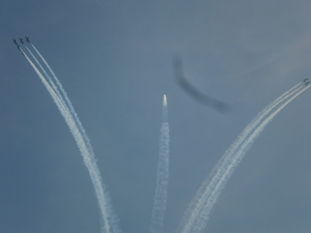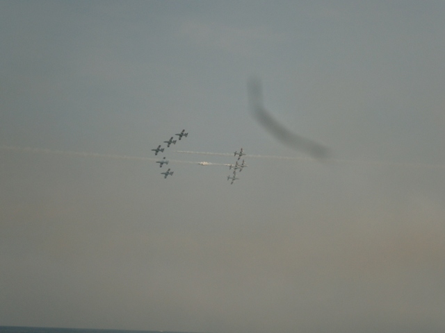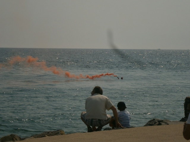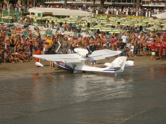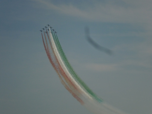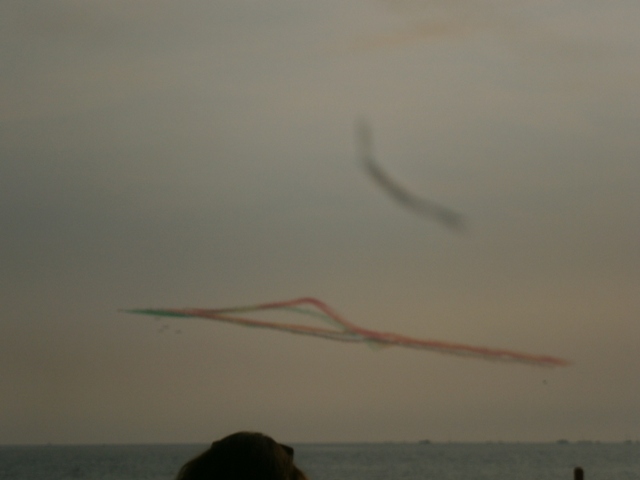 All'opera nei cieli anche tre idrovolanti, che sono poi ammarati sulla spiaggia, tra gli applausi della folla. Il più applaudito del pubblico, sinora, sicuramente l' Aereo Gallo, che, come dice il nome, è metà gallo e metà veivolo, con tanto di chicchirichì.