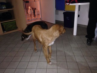 Trovati sulla strada per il Melogno, sulle alture sopra Finale Ligure, un border collie rosso e un cucciolo di simil-Golden/Nova Scotia di color fulvo di circa 5-6 mesi, entrambi maschi.