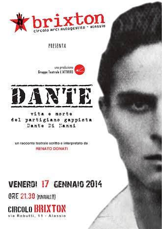 L'Attrito in trasferta al Circolo Arci Brixton di Alassio presenta un monologo che ripercorre l'esperienza dei Gruppi di Azione Patriottica, e di uno dei suoi eroi più nobili e degni : il torinese Dante dI Nanni, Medaglia d'Oro al Valor Militare.