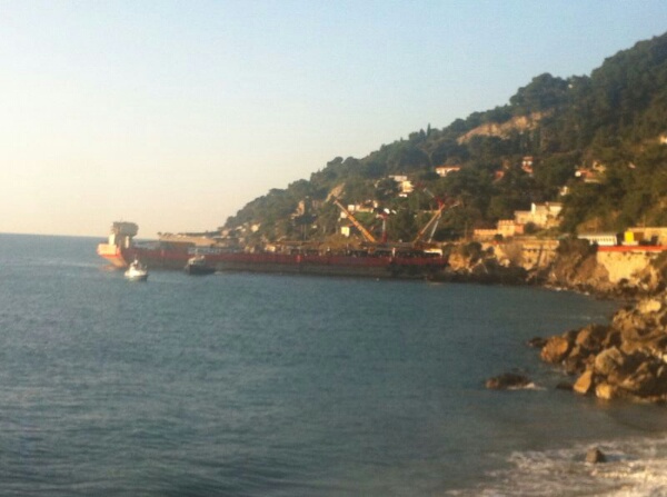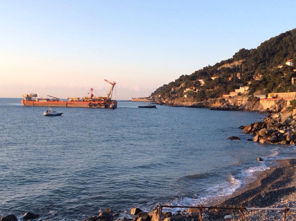 È arrivata questa notte alle 3,45 la chiatta della ditta "Vernazza", che si occuperà della rimozione via mare del treno Intercity 660, deragliato lo scorso 17 gennaio ad Andora.