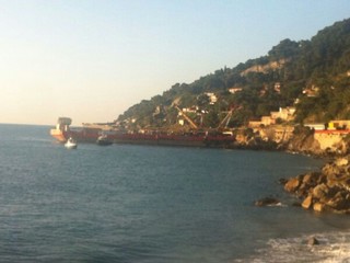 È arrivata questa notte alle 3,45 la chiatta della ditta "Vernazza", che si occuperà della rimozione via mare del treno Intercity 660, deragliato lo scorso 17 gennaio ad Andora.
