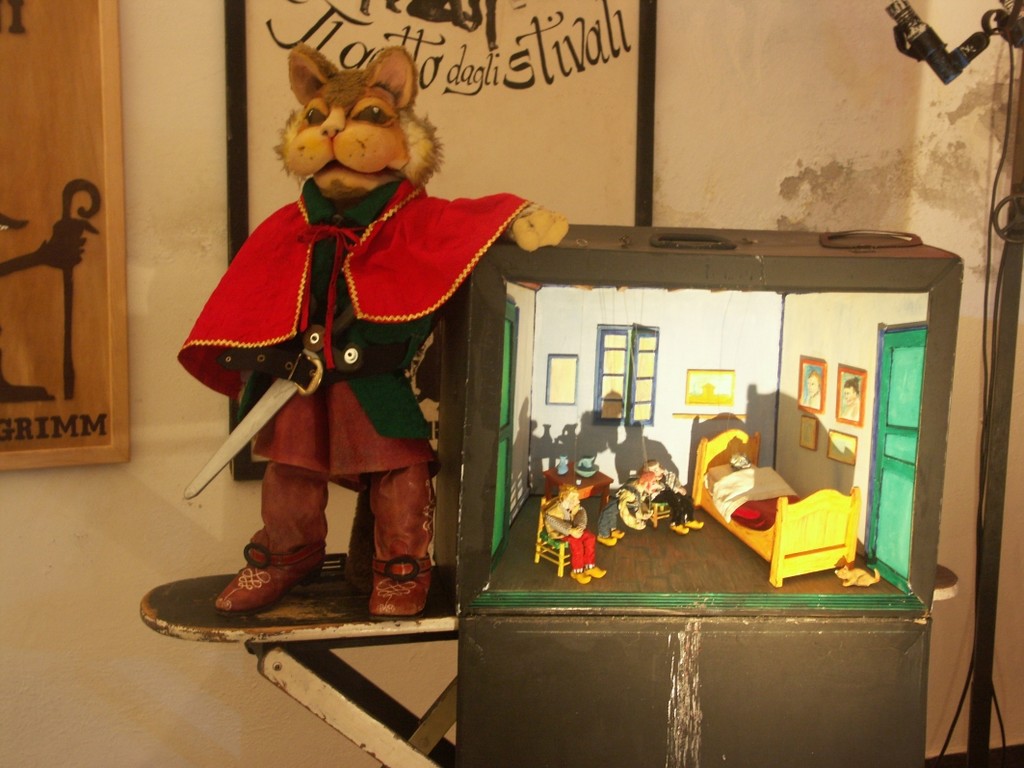 Il percorso, composto da manifesti in legno, pupazzi e scenografie, condurrà alla scoperta dei personaggi delle fiabe dei fratelli Grimm. Percorrendo la mostra, come in un viaggio, si entrerà nel favoloso mondo di Cenerentola, passando per la casa di marzapane della strega di Hansel e Gretel, inciampando in un lupo affamato che cerca Cappuccetto Rosso, scoprendo la furbizia del Gatto con gli Stivali per approdare al castello di Pelle d’Asino non dimenticando di pungersi il dito con il fuso della Bella Addormentata.