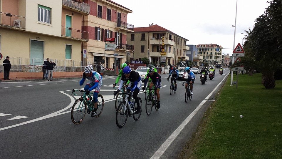 Aggiornamento alle 14:37: caduta all'uscita di Savona, coinvolti cinque corridori tra cui Fortin della Bardiani.