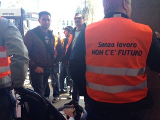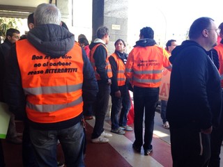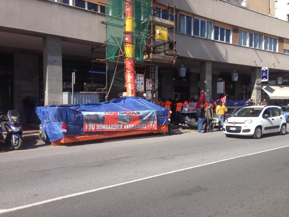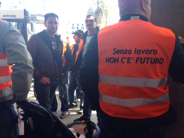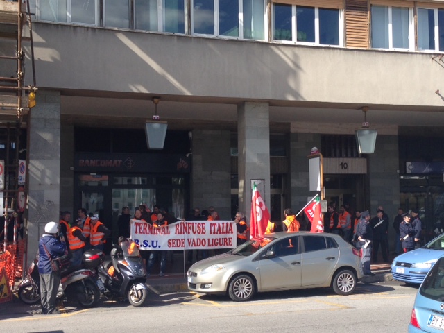 “Senza lavoro non c’è futuro”, questa la scritta che campeggia sugli striscioni e sulle giacche dei lavoratori della Terminal Rinfuse Italia che da questa mattina si trovano in presidio sotto l’Unione Industriali di Savona.