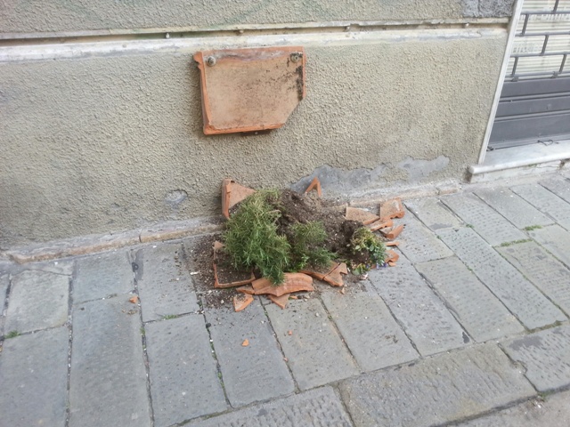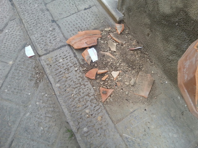 A giudicare dalla posizione dei vasi e dalla rottura sembrerebbe che si sia trattato di opera di vandali.