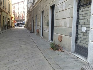 Via Ghiglieri è una delle vie di accesso al centro storico, per chi arriva da via Brunenghi e dalla stazione ferroviaria e ieri purtroppo il biglietto da visita non era dei migliori.