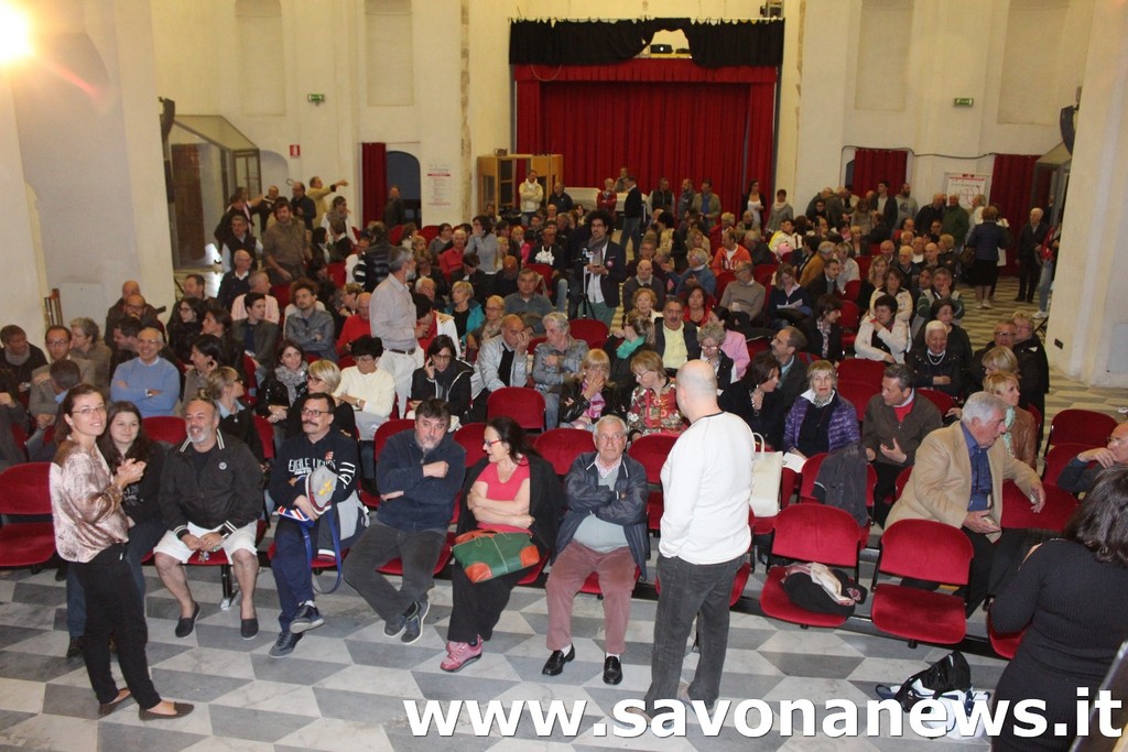 Una sala gremita, già allestita per la Festa dell’Inquietudine, la stessa sensazione che ironicamente, abbiamo voluto sottolineare, pervade i finalesi che il 25 maggio andranno alle urne.