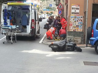 Incidente tra uno scooter ed un'automobile. E' avvenuto poco fa intorno alle 17 sull'Aurelia all'incrocio tra via Mazzini e via Brunenghi a Finale Ligure