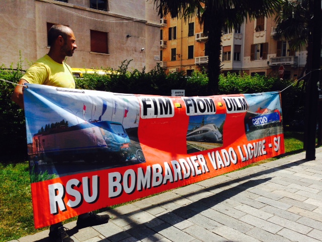 Presenti al presidio davanti alla Prefettura di Savona, in segno di solidarietà, anche i lavoratori della Bombardier.