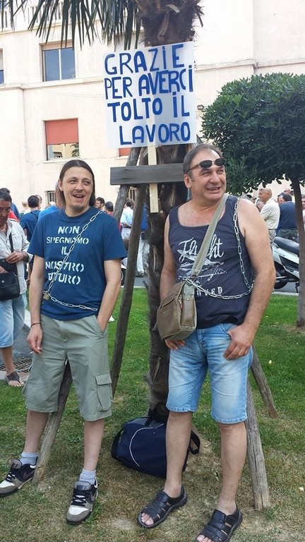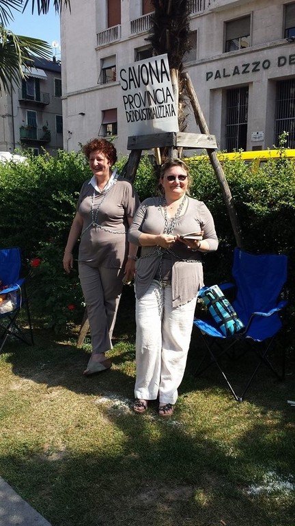 "In seconda battuta - prosegue Fulvia Veirana - dopo la sospensione dell'Aia da parte del Ministero dell'Ambiente rischiamo di vedere precipitare la situazione. Noi siamo incatenati qua perchè vogliamo che il Governo si occupi della nostra situazione e che ci scriva le regole con le quali il sito di Vado può tornare a produrre, rispettando l'ambiente e la salute delle persone. Ci sono 600 famiglie che rischiano di perdere il lavoro senza benefici ambientali. Siamo incatenati davanti alla Prefettura, al TRI di Vado e al comune di Quiliano perchè il Governo promuova il prima possibile un incontro con il Ministero dell'Ambiente, dello Sviluppo Economico, del Lavoro e della Salute per monitorare la salute dei cittadini. E' giunto il momento in cui qualcuno prenda le sue responsabilità".