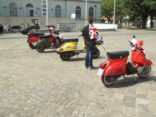 Durante la manifestazione, in bella mostra, svariati modelli della mitica vespa, che ha motorizzato intere generazioni di giovani e non a partire dal 1946, fino ad arrivare agli ultimi modelli degli anni 90.