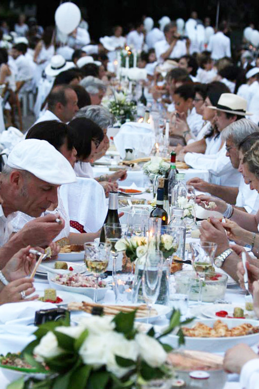 Di cosa si tratta: E' una cena a tutti gli effetti, all’aperto sotto le stelle della nostra città, che si terrà Sabato 6 Settembre in un luogo ancora segreto di Savona (la location rimarrà segreta fino all’ultimo, solo 48 ore prima verrà annunciata tramite la pagina e il gruppo di facebook “SAVONAINBIANCOBLU2014”). Le regole per partecipare sono semplici: tutto dev’essere bianco!La particolarità di questa cena, oltre alla connotazione Flash mob, è che tutti i partecipanti dovranno venire vestiti di bianco ed autogestirsi la cena, portando con sè tutto il necessario; dovranno quindi arrivare con tavoli, sedie, stoviglie e tutto l’occorrente per apparecchiare la propria tavola, con un tocco anche ecologico (niente plastica, lattine e superalcolici).Ma via libera alla creatività e alla fantasia di ognuno, tovaglie e tovaglioli di tessuto, piatti di ceramica, bicchieri di vetro o cristallo, centrotavola, fiori, candelabri, candele tutto rigorosamente bianco! Il cibo sarà preparato a casa e portato pronto.Anche per l’abbigliamento, libero sfogo alla creatività e all’estro, abiti bianchi, semplici contemporanei o vintage, copricapi originali, cappelli, coroncine e fiori nei capelli, parrucche bianche, ali d’angelo, mantenendo comunque sempre ben presente le piccole regole di eleganza ed educazione.L’obiettivo è vivere una serata emozionante, coinvolgendo il più grande numero di persone, in modo attivo, stimolando la voglia di stare tutti insieme in una grande festa calorosa e conviviale e vivere insieme la città.La partecipazione è gratuita, e l’invito è rivolto a tutti, dai bambini alle persone adulte, con un occhio di riguardo per le persone più avanti con l’età, quindi consigliamo a tutti di coinvolgere e portare anche i genitori più anziani!Per partecipare è necessario mandare la propria adesione all’indirizzo mail: savonainbiancoblu2014@gmail.com specificando un nome e il numero totale dei partecipanti. Questo permetterà di organizzare al meglio l’evento e scegliere la location più adatta.