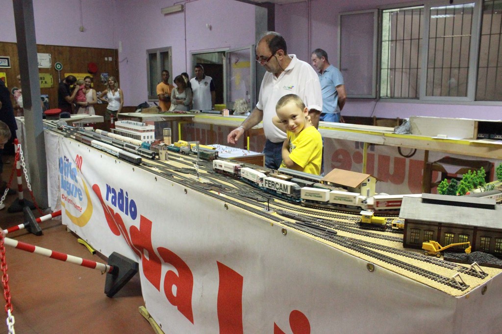 Ed ecco allora tutti tornare un po’ bambini di fronte al modellino e ai trenini che sfrecciano sui binari, due convogli sul circuito il cui movimento è sapiente gestito dal capotreno che con occhio vigile sorveglia e gestisce scambi, velocità e distanze.
