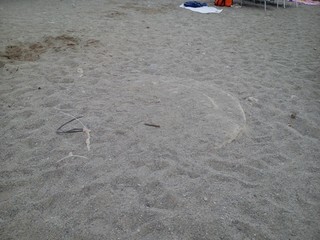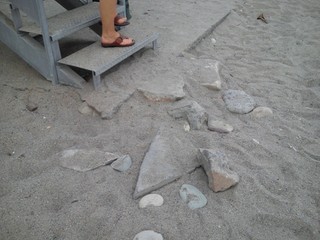 Una doccia addossata al muro coperta di una muffa nera, una struttura abbandonata con la porta divelta e fermata con una corda, pezzi di cemento abbandonati in spiaggia: è questa la situazione della spiaggia libera di Finalpia, vicino al molo.