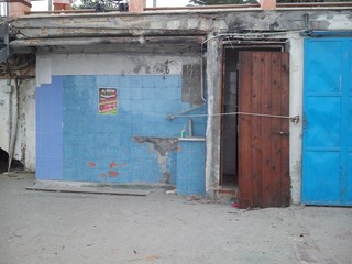 Doccia addossata al muro con muffa, strutture abbandonate sulla spiaggia, pezzi di cemento, bisogni di cani nella zona sotto il ponte