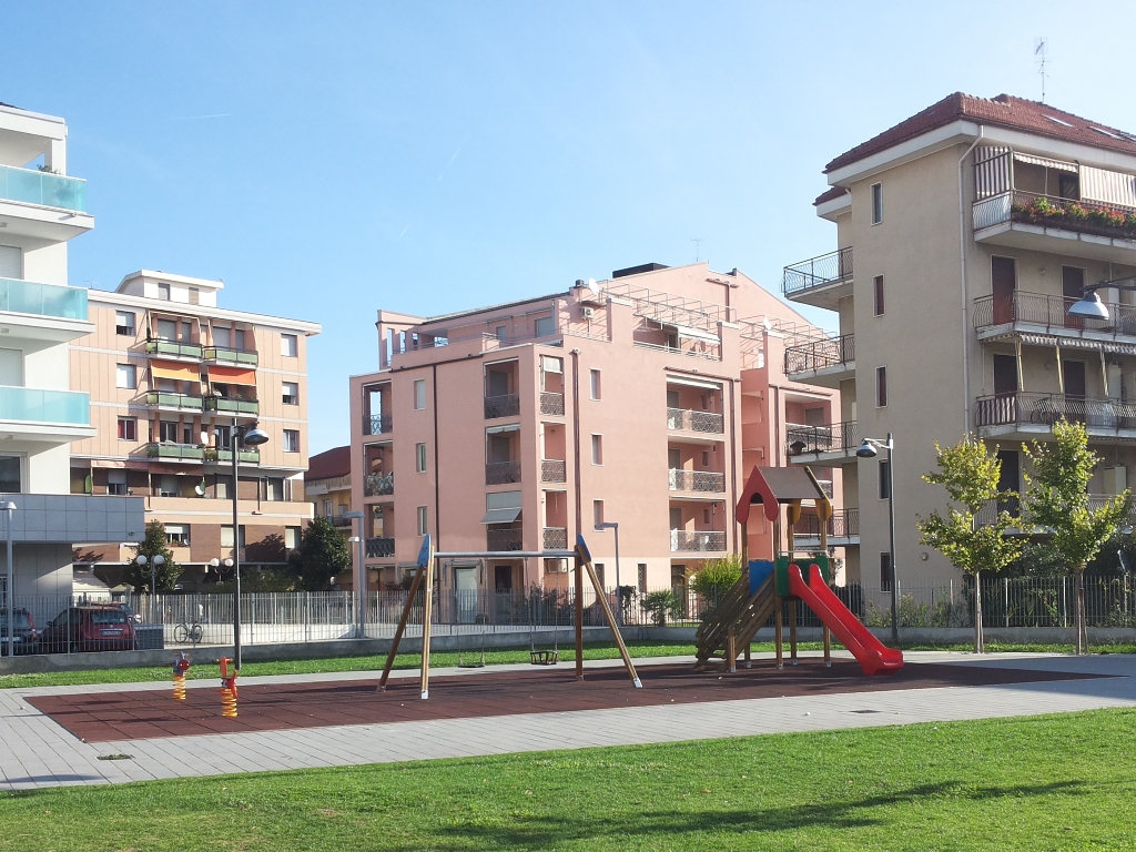Immersa in un contesto di palazzine residenziali di prestigioso livello architettonico, attrezzata con un'area giochi per i bimbi, un'isola di pattinaggio, una pista “sopraelevata” utilizzabile anche dai bimbi disabili per le gare con le biglie e con le macchinine sia manuali sia telecomandate e il campo della pallacanestro. Pochi giochi, è vero, ma ben distribuiti.