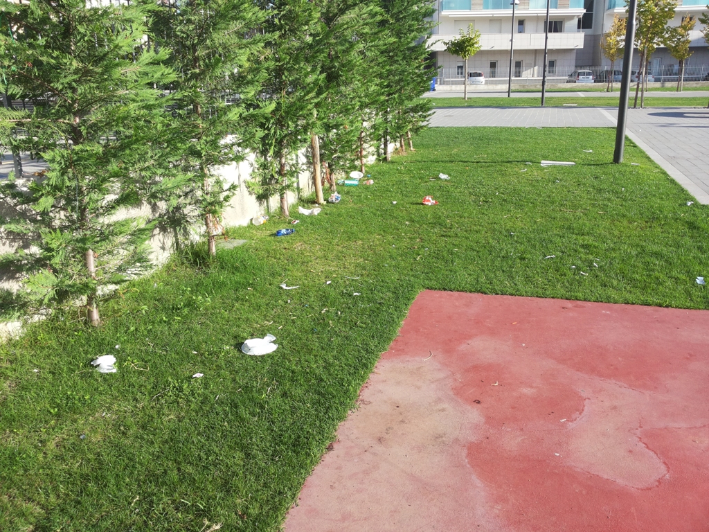 Tra prato verde rovinosamente seccato qua e là a macchia di leopardo e rifiuti sparsi ovunque, ad ogni angolo in quella che dovrebbe essere una delle oasi