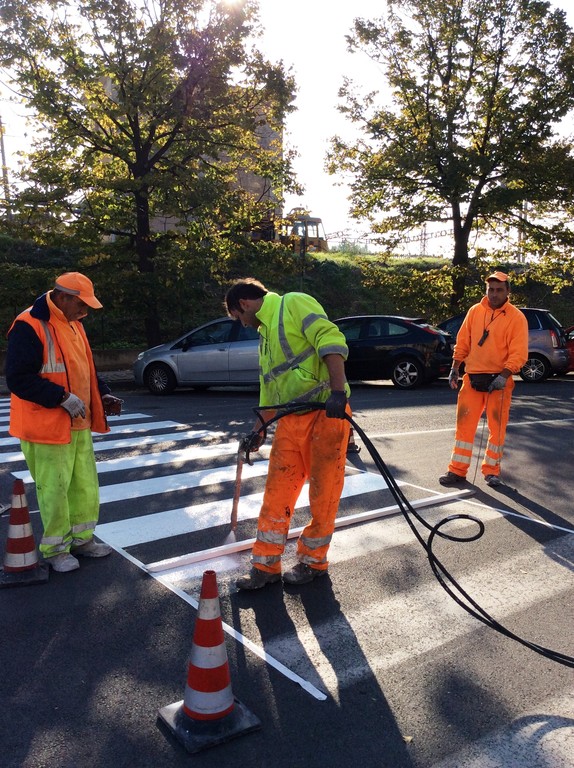 Prosegue in questi giorni il restyling della segnaletica stradale e ripasso delle strisce pedonali, ma non solo, anche il ripristino e cambio di lampadine dell’ illuminazione stradale.