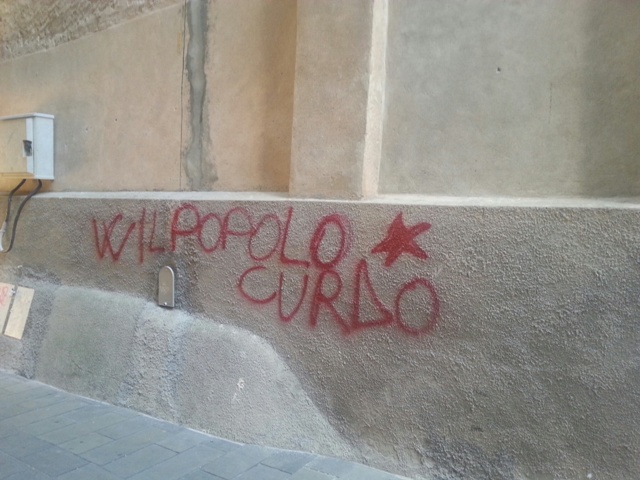 Sul muro di via Pollupice è infatti comparsa da un po' di tempo la seguente scritta "W il popolo curdo", alla quale sono stati affiancati anche degli altri disegni.