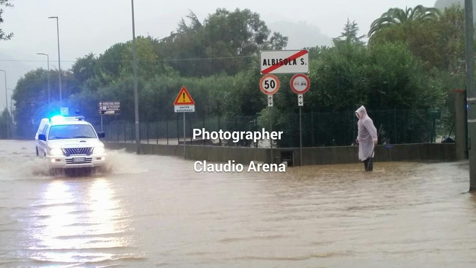 Anche ad Albissola Marina si registra una situazione critica, con strade invase dall'acqua e in alcuni casi trasformate in piccoli ruscelli.