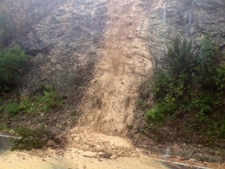 3. frana lungo la SP 4 dopo la chiesetta di Sant'Eligio e prima di Bardino Vecchio. In loco PC, operai comunali e della Provincia ;
