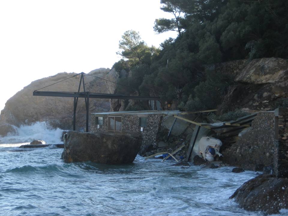 Baia dei Saraceni: un blocco di pietre si stacca dal costone e finisce sul rimessaggio barche
